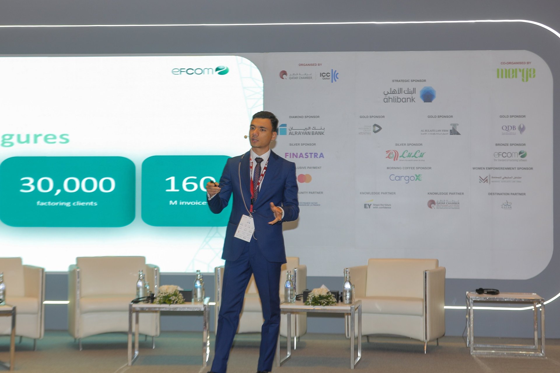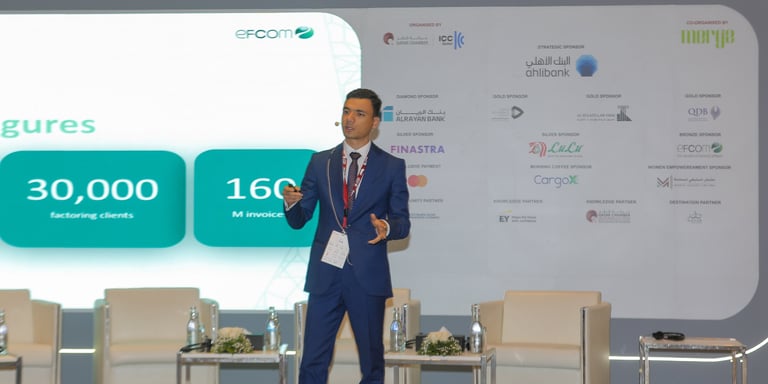 Bringing a fresh take on an established tool, Abdelrahman Elbeltagy, an Islamic Factoring Expert from efcom, presented an eye-opening session on ‘Optimising Islamic Factoring Operations: Modern Workflow Solutions.’ This presentation highlighted how Islamic finance principles integrate with modern fintech solutions, addressing the unique requirements of Sharia-compliant financial products.